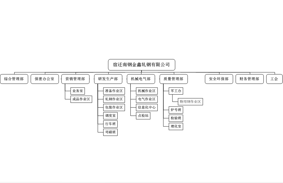宿遷南鋼金鑫軋鋼有限公司(以下簡稱宿遷金鑫)是南鋼集團旗下的具有獨立法人地位的子公司。2008年,根據(jù)江蘇省委、省政府關(guān)于南北產(chǎn)業(yè)轉(zhuǎn)移的號召,對無錫金鑫軋鋼有限公司實施整建制搬遷至宿遷。公司占地480畝,在冊員工580人,下設(shè)綜合管理部、營銷管理部、研發(fā)生產(chǎn)部、質(zhì)量管理部、機械電氣部、安全環(huán)保部、財務(wù)管理部7個部門。